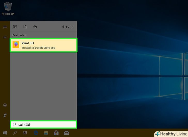 Запустіть Paint 3D. введітьpaint 3D у меню «Пуск», а потім натисніть «Paint 3D» у верхній частині меню «Пуск».