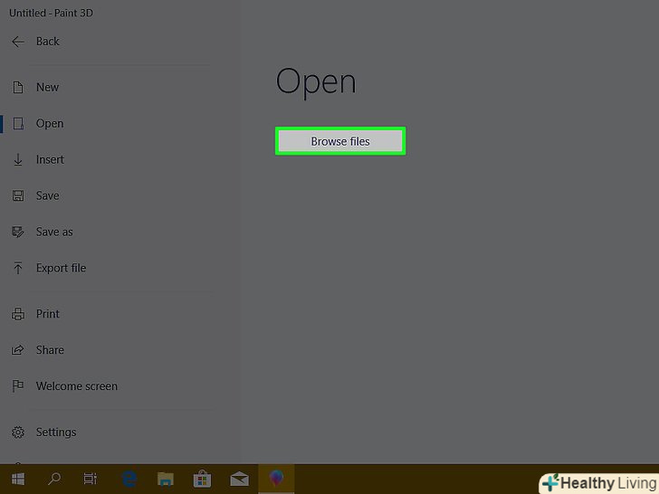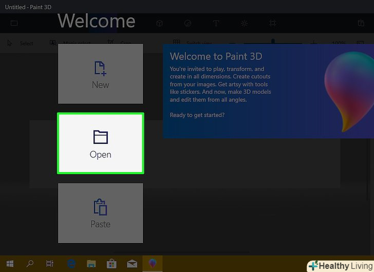 НатиснітьВідкрити.ця кнопка знаходиться посередині вікна Paint 3D.