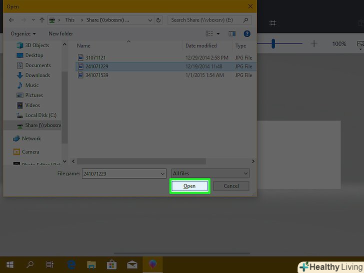 НатиснітьВідкрити.ця кнопка знаходиться в нижньому правому куті вікна. Зображення відкриється в Paint 3D.