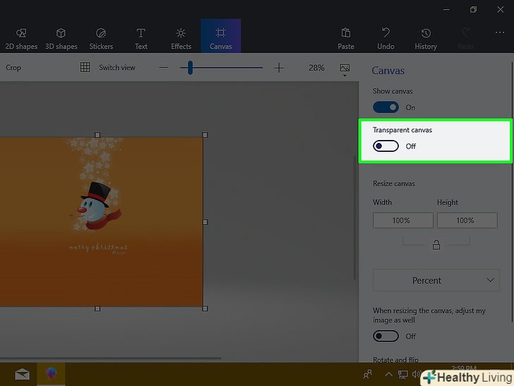 Клацніть по сірому повзунку у "прозоре полотно". Він знаходиться на правій панелі. Повзунок стане синім