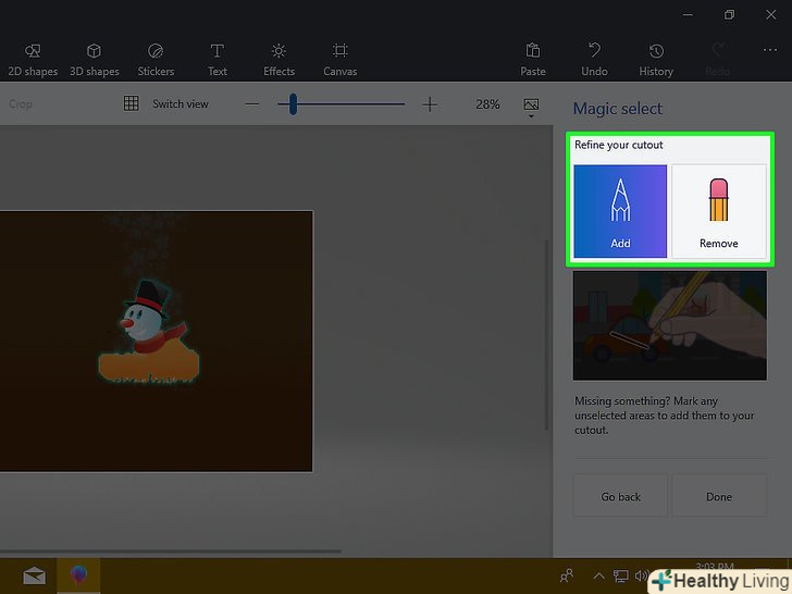 НатиснітьЧарівне виділення.ви знайдете цю вкладку зліва у вікні Paint 3D.
