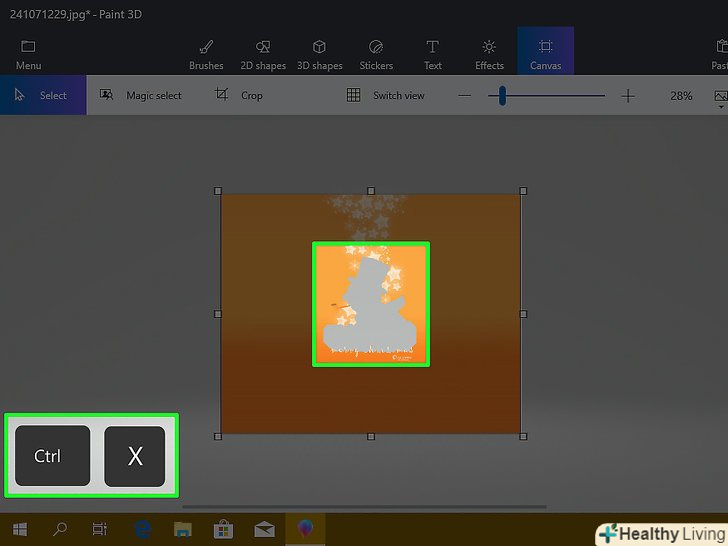 Виріжте виділений фрагмент у буфер обміну. Для цього натисніть Ctrl+X. Вибраний фрагмент зникне з вікна Paint 3D.