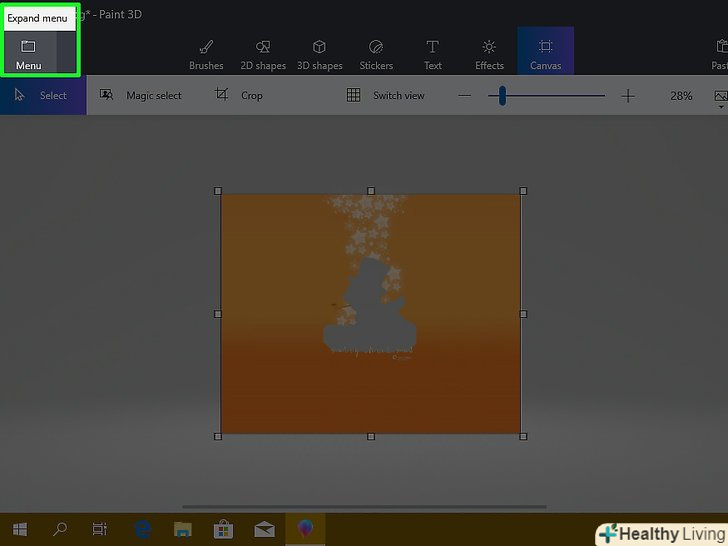 Збережіть зображення. щоб зберегти проект як зображення, виконайте наступні дії:- Натисніть "Меню" (значок у вигляді папки) у верхньому лівому куті вікна;