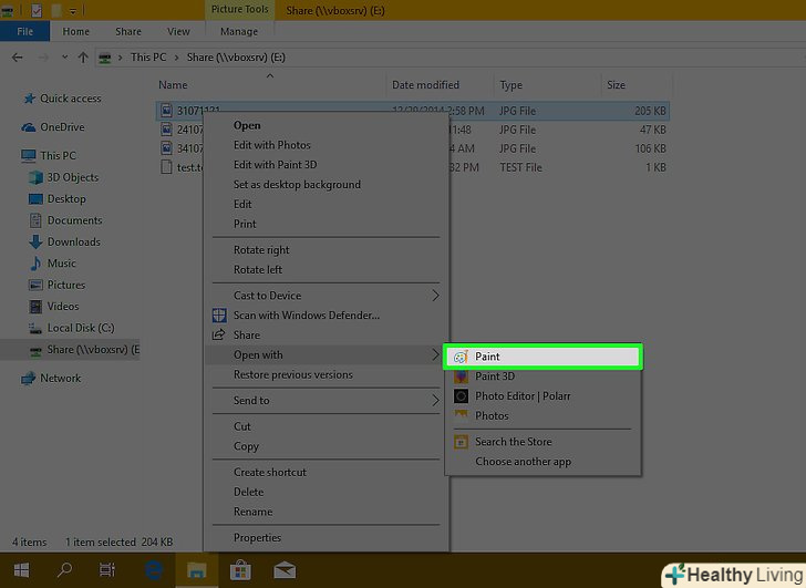 НатиснітьPaint.ця опція знаходиться в новому меню. Зображення відкриється в Paint.