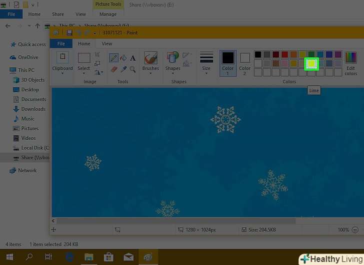 Двічі клацніть по яскраво-зеленому квадрату. він знаходиться у верхній правій частині вікна Paint.