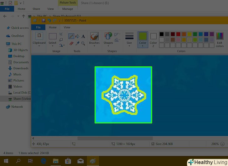 Використовуйте іншу програму для заміни зеленого фону.на жаль, в Paint залений фон не можна замінити іншим зображенням; для цього знадобиться графічний редактор (наприклад, Photoshop) або відеоредактор.- Весь фон пофарбований в один колір, тому коли ви заміните його, потрібне зображення з'явиться на новому тлі.