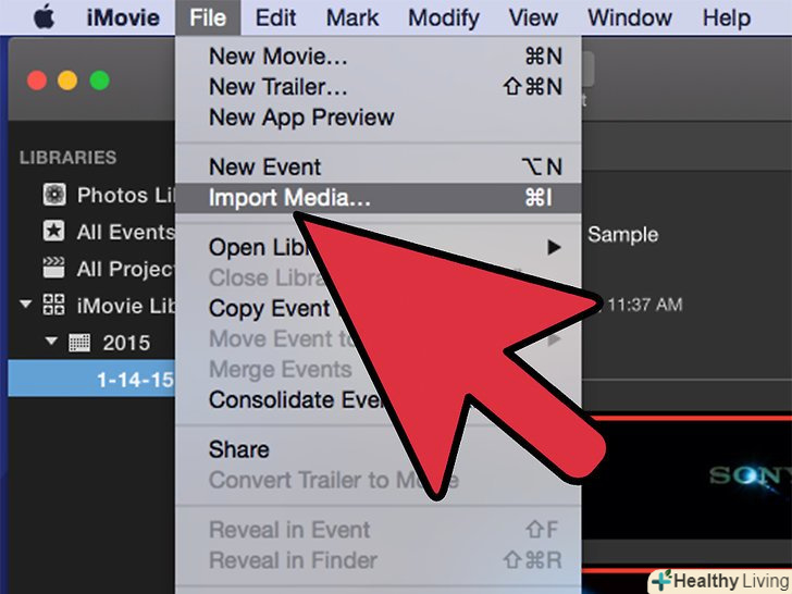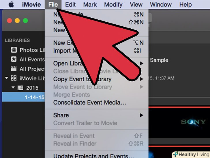 Перейдіть в меню "Файл" у верхній частині програми iMovie.