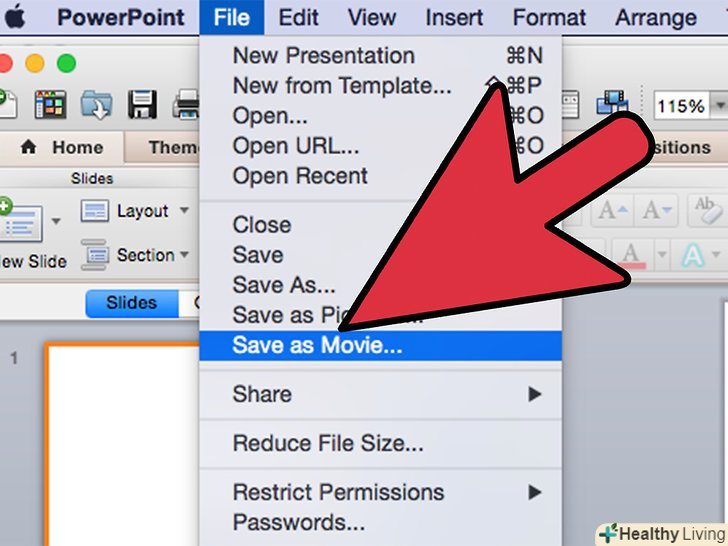 Перейдіть у вікні PowerPoint у вкладку "Файл«, а потім виберете опцію»Створити відео".відкриється вікно, що пропонує зберегти презентацію у вигляді файлу "MOV". Далі вам буде потрібно змінити налаштування файлу PowerPoint.