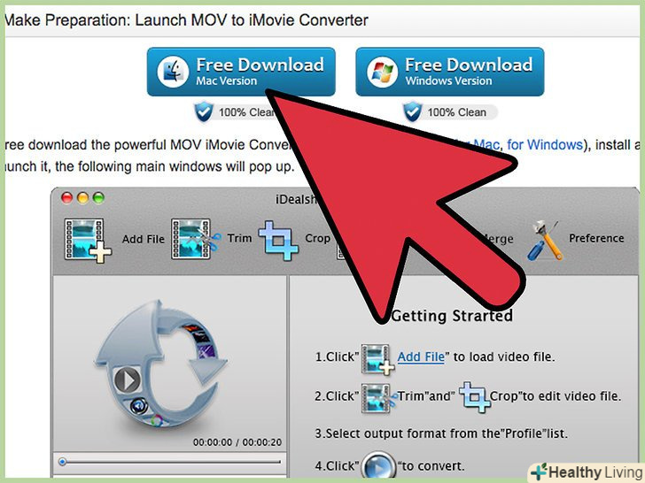 Скачайте програму-конвектор»MOV to iMovie".таку програму можна завантажити безкоштовно, для цього введіть в пошуковику Google «MOV to iMovie Converter». При натисканні "завантажити «Не забудьте про кнопку» Виконати«, замість»Зберегти". Таким чином, програма запуститися автоматично, як тільки закінчитися завантаження.