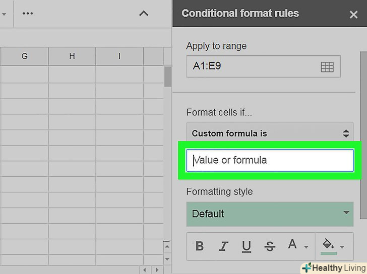 Натисніть на рядокЗначення або формула На правій панелі.у цьому рядку потрібно ввести певну формулу.