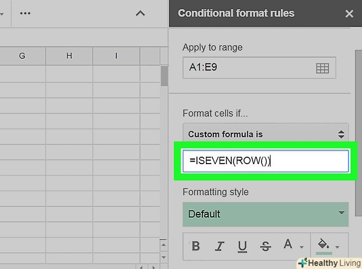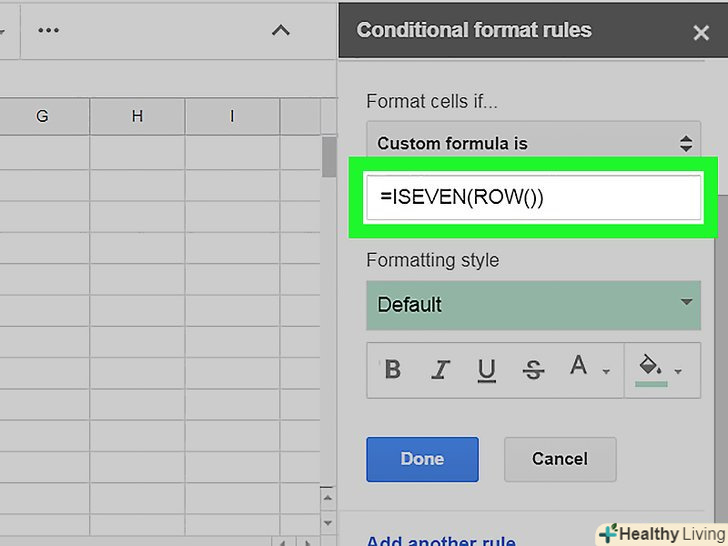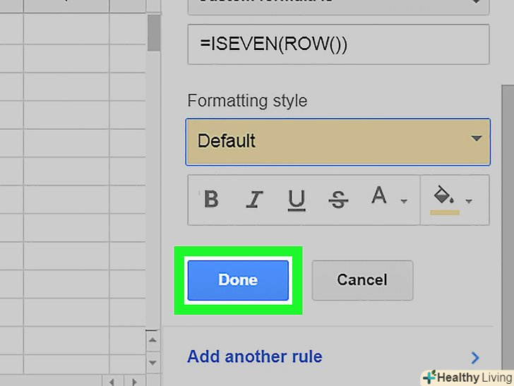Введіть=ЕЧЕТН(рядок()). будуть виділені всі парні рядки, які знаходяться в обраному діапазоні.- Щоб виділити непарні рядки, введіть формулу=ЕНЕЧЕТ(рядок()).