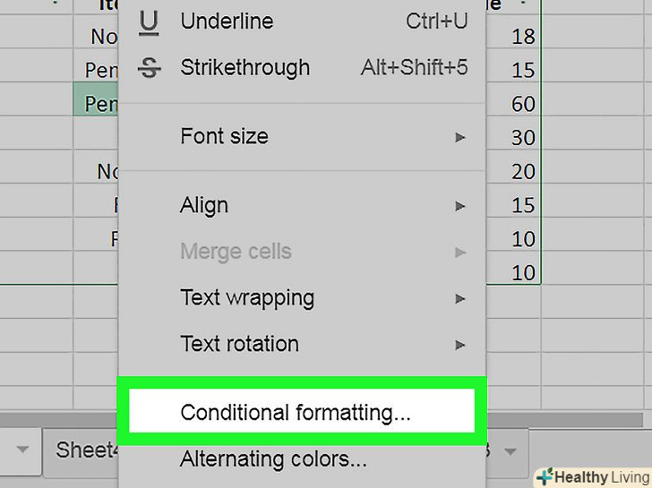 Відкрийте меню в розділі "форматування комірок". Ви знайдете його посередині правої панелі. Відкриються параметри форматування.