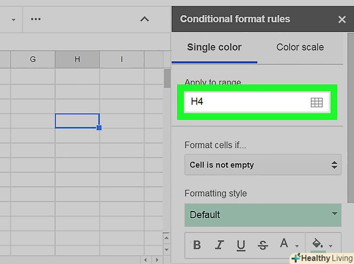 Клацніть по рядку в розділі "Застосувати до діапазону". Ви знайдете її вгорі правої панелі. Тепер можна вибрати діапазон, рядки якого будуть виділені.
