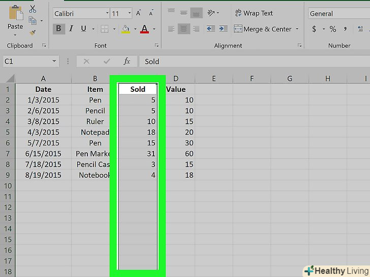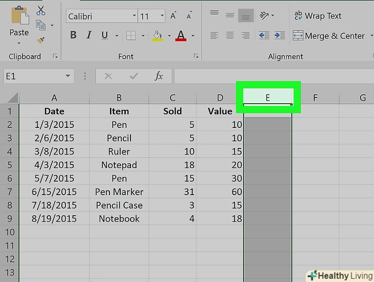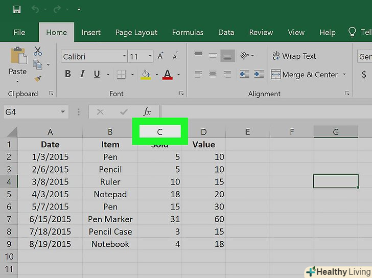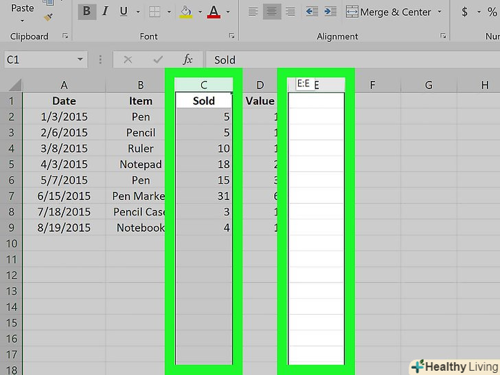 Натисніть на букву над потрібним стовпцем, щоб виділити його.- Щоб перемістити кілька суміжних стовпців, утримуйтеCtrl (Windows) або ⌘ Command (Mac) і натисніть на літери цих стовпців.