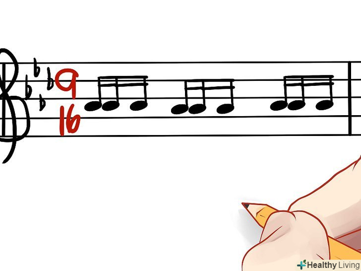 Вивчіть інші складні тактові метри.тактовий метр може представляти будь-яку частку, тобто у вас може бути 9/16, 17/32, або навіть 15/64! Використовуйте ті ж методи, що використовуються для розмірів з восьмими нотами (восьмушки), але розділіть ноти відповідно до типу ноти, що визначається нижнім числом. Розділіть кожне верхнє число на групи по два, три або чотири-це покаже, де знаходяться основні частки і ви зможете вести рахунок!