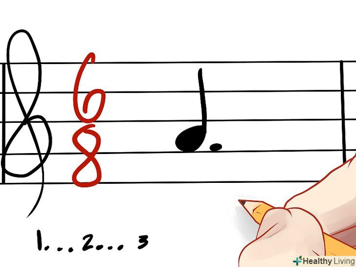 Вивчіть рахунок розміру 6/8. цей розмір має тільки дві частки в метрі, так як він знаходиться в складному розмірі. Він дуже часто застосовується в фолк музиці або джазі. У цьому тактовому розмірі, четвертна нота з точкою (четвертинка з точкою) вважається як частка. Наприклад, 1--2--. Одна відома пісня в цьому розмірі з фільму-Пірати Карибського моря « "він пірат".