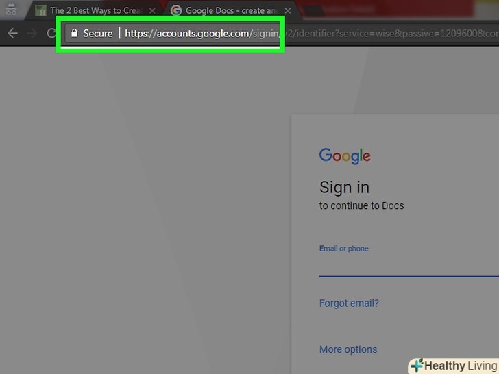 Перейдіть на сайт Google Документів. його адреса: https://docs.google.com/document / . відкриється ваша сторінка документів, якщо ви вже авторизувалися в Google.- Якщо ви ще не ввійшли до свого облікового запису Google, введіть адресу електронної пошти та пароль.