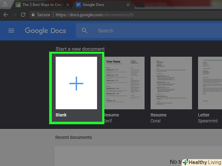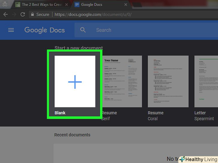 НатиснітьПорожній файл. ця опція знаходиться зліва в розділі "Створити документ", який розташований вгорі сторінки. Відкриється порожній (новий) документ.