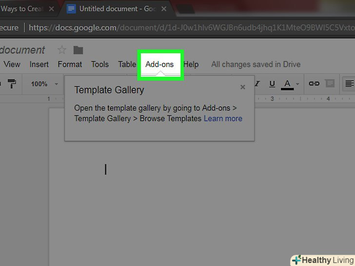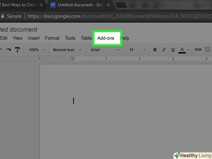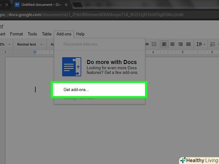 Відкрийте менюДоповнення. воно знаходиться в рядку меню над новим документом.