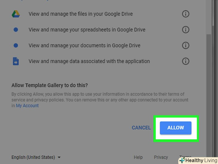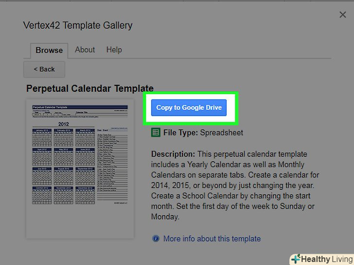 Клацніть поCopy to Google Drive (Копіювати на Google Диск). Ця опція знаходиться праворуч у вікні. Документ з шаблоном календаря буде скопійований на ваш Google Диск.