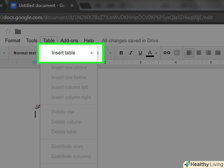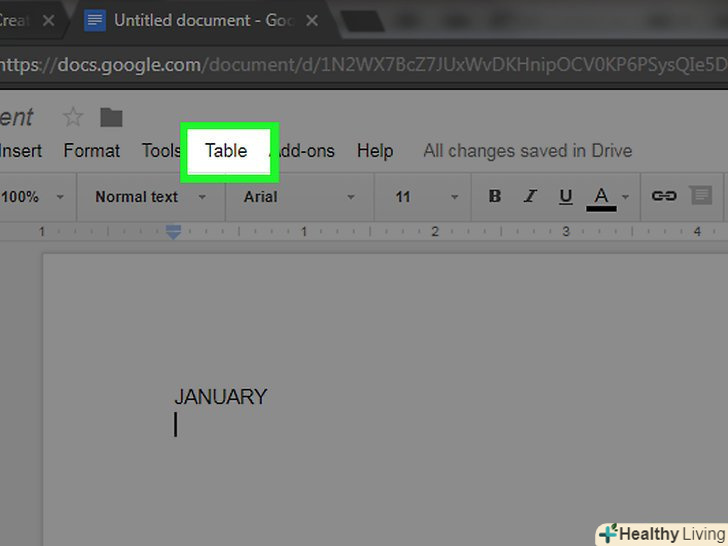 Відкрийте менюВставка. воно знаходиться в лівій верхній частині сторінки.
