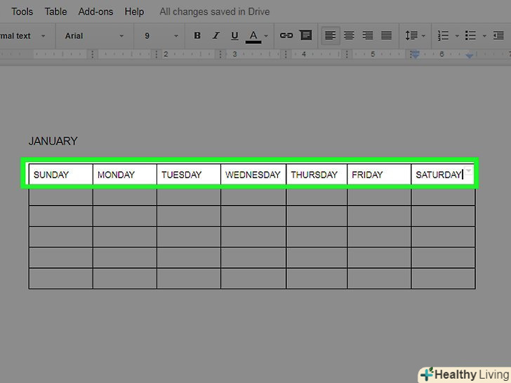 Введіть назви днів тижня.зробіть це в першому рядку календаря.- Наприклад, у верхній лівій комірці введіть "Неділя«, потім праворуч введіть» понеділок" і так далі.
