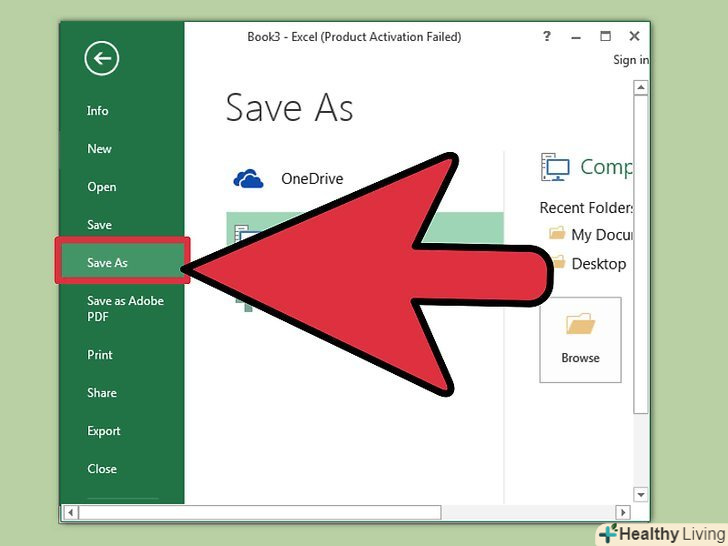 Відкрийте меню "Зберегти як".після завершення введення даних у таблицю Excel збережіть її у форматі, який підтримується Outlook.