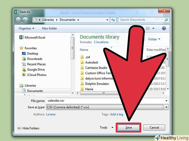 Збережіть файл.введіть ім'я файлу та збережіть його у форматі CSV. У вікні з питанням, чи хочете ви продовжити, натисніть "Так".