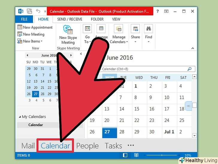 Відкрийте календар Outlook.outlook входить в пакет програм Microsoft Office, тому якщо у вас встановлений Excel, то, швидше за все, встановлений і Outlook. Запустіть Outlook і натисніть "календар" (у нижньому лівому куті).