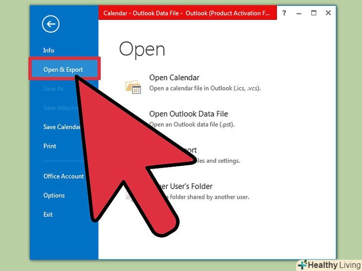 Перейдіть на вкладку " Файл "і виберіть"Відкрити і експортувати".відобразиться список опцій для обробки даних Outlook.