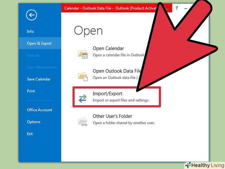 Виберіть "Імпорт / Експорт".відкриється нове вікно, в якому ви можете імпортувати / експортувати дані в / з Outlook.