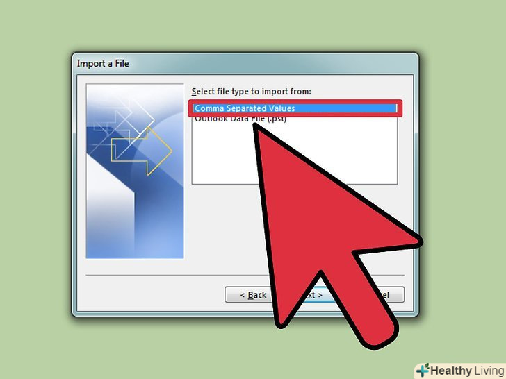 Виберіть "Імпорт з іншої програми або файлу", а потім натисніть "дані, розділені комами". вам буде запропоновано вибрати файл, з якого ви хочете імпортувати дані.