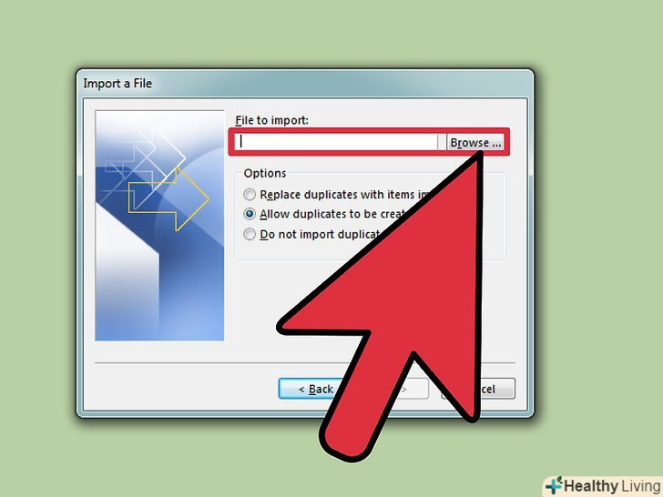 Натисніть "Огляд" і знайдіть файл CSV, який ви створили в Excel.у більшості випадків ви знайдете цей файл у папці "Мої документи" (якщо ви не змінювали розташування файлів, задане в Excel за замовчуванням).