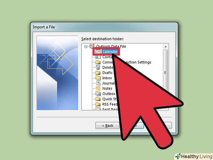 Як папку призначення виберіть "календар".це потрібно зробити, так як в Outlook відкритий календар.