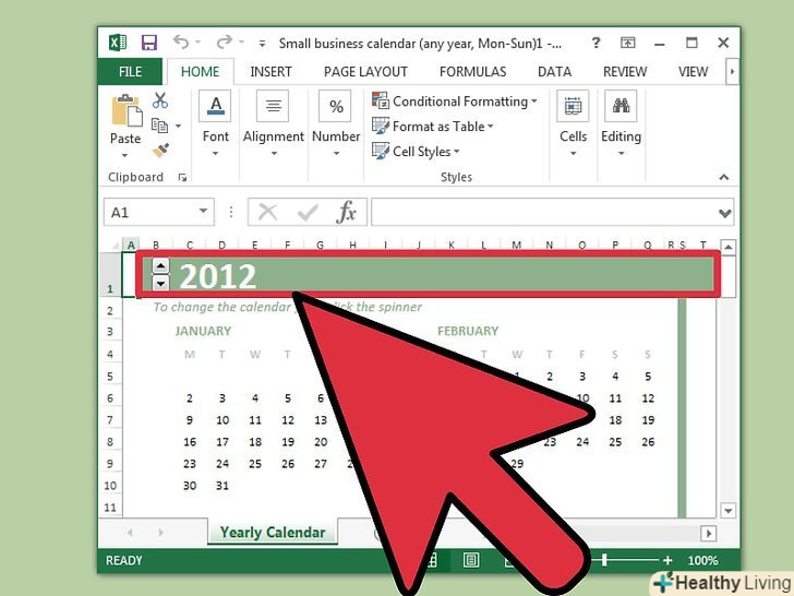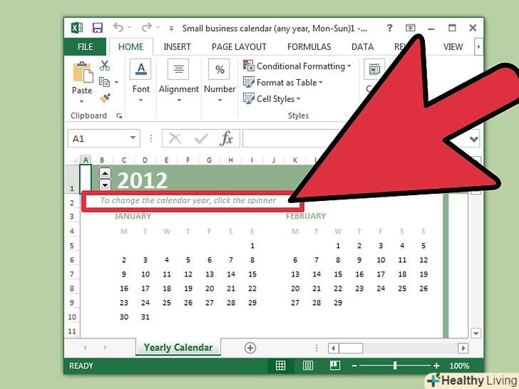 Змініть дати в шаблоні календаря.при виборі шаблону на екрані відобразиться календарна сітка з датами. Швидше за все, дати не будуть збігатися з днями тижня, але це коригується в меню, що відкривається при виборі дати.- Процес зміни дати залежить від обраного шаблону, але в більшості випадків потрібно вибрати рік або місяць, а потім натиснути кнопку ▼, яка відобразиться біля нього. Відкриється меню з опціями, за допомогою яких можна налаштувати правильне розташування дат.