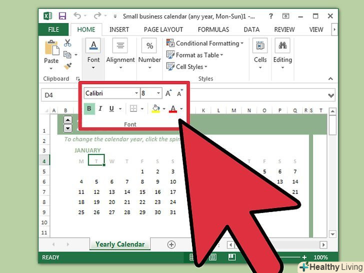 Змініть оформлення календаря.ви можете змінити зовнішній вигляд будь-якого елемента; для цього виберіть потрібний елемент і внесіть зміни на вкладці "Головна". Ви можете змінити шрифт, його колір і розмір і багато іншого.
