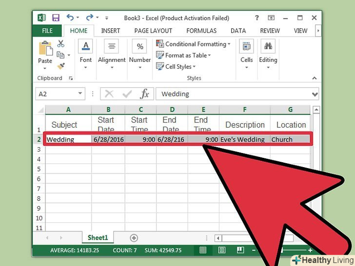 У таблицю додайте відповідні заголовки.завдання з імпорту даних в Outlook набагато спроститься, якщо електронна таблиця матиме відповідні заголовки. У перовій рядку введіть наступні заголовки:- Предмет (назва події)