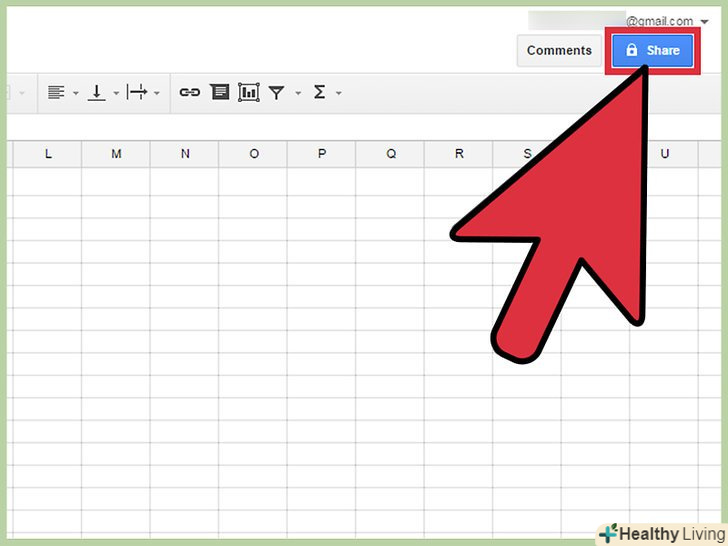 Поділіться таблицею. опція «поділитися» знаходиться не тільки у вкладці «Файл», але і у вигляді синьої кнопки в правому верхньому куті екрану. Натисніть на неї, а потім введіть електронні адреси користувачів, яким ви хочете відкрити доступ до таблиці. Виберіть, чи надавати іншим користувачам можливість змінювати, коментувати або просто переглядати документ. У вас також буде можливість створити загальну посилання, яку можна відправити окремо.