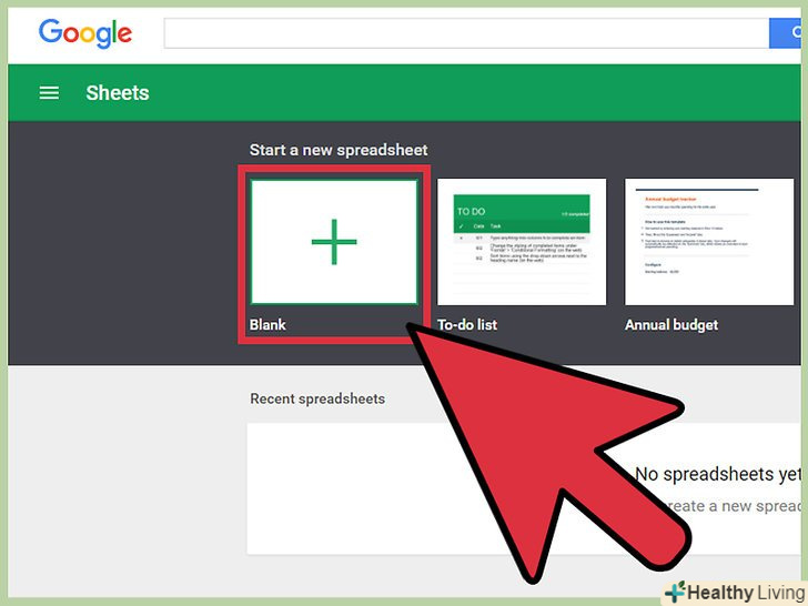 Відкрийте нову таблицю.під заголовком "створити таблицю" ви побачите кілька шаблонів. "Порожній файл" є самим базовим шаблоном, але на вибір будуть також доступні шаблони для бюджетів, календарів та інших звітів. Натисніть на "Галерея шаблонів", щоб відобразити ще кілька шаблонів.[2]