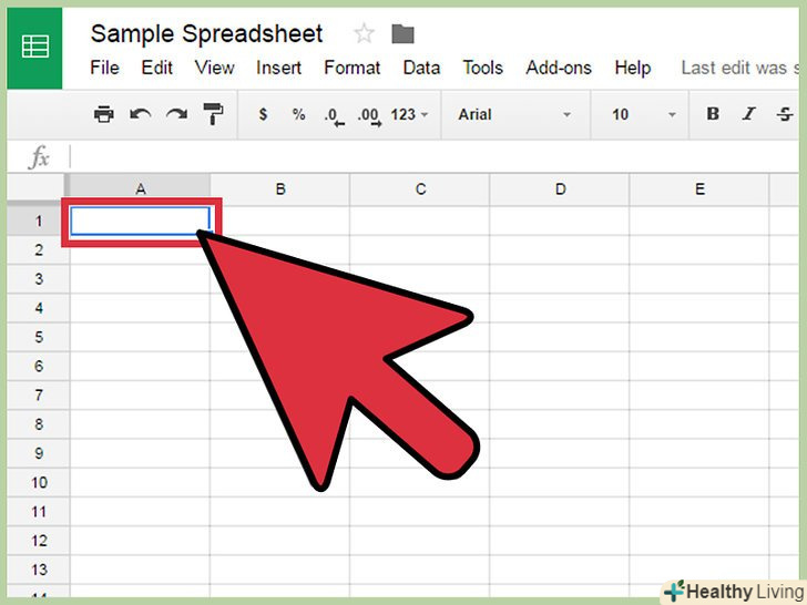 Введіть дані в рядки та / або стовпці.врахуйте, що перші осередки рядків або стовпців можна перейменувати. Для цього виділіть текст початкових осередків жирним, щоб їх можна було відрізнити від числових даних. Стовпці йдуть до літери "Z", а рядків спочатку 1000.[3]- Щоб додати більше рядків, перегорніть в самий низ і натисніть на кнопку»Додати". Після неї знаходиться текстове поле (з текстом "рядки внизу"), в якому можна вказати, скільки рядків ви хочете додати.