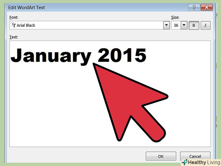 Наберіть і розташуйте текст.Порядок цих дій залежить від того, чи використовуєте ви Word Art або текст у полі.- Якщо ви додаєте Об'єкт Word Art, виберіть один із стилів у меню Word Art Gallery, потім виберіть шрифт і наберіть текст. Після натискання" OK " текст з'явиться на сторінці, оточений точками управління розміром. Напис можна розташувати де завгодно, навівши курсор на текст, щоб він прийняв вигляд чотирикінцевої стрілочки. Мишкою перетягніть напис на потрібне місце.