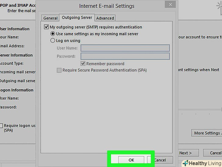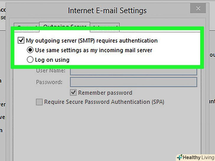 - Увімкніть параметр "аналогічно серверу для вхідної пошти".[2]