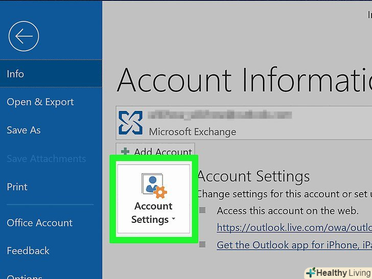 Натисніть "Сервіс«, потім»налаштування облікових записів". Меню "Сервіс" знаходиться на панелі інструментів програми. Розділ "налаштування облікових записів" є одним з пунктів спадного меню.- Примітка: У деяких версіях Outlook це меню знаходиться в розділі «Файл» → «відомості» → "налаштування облікових записів".[1]