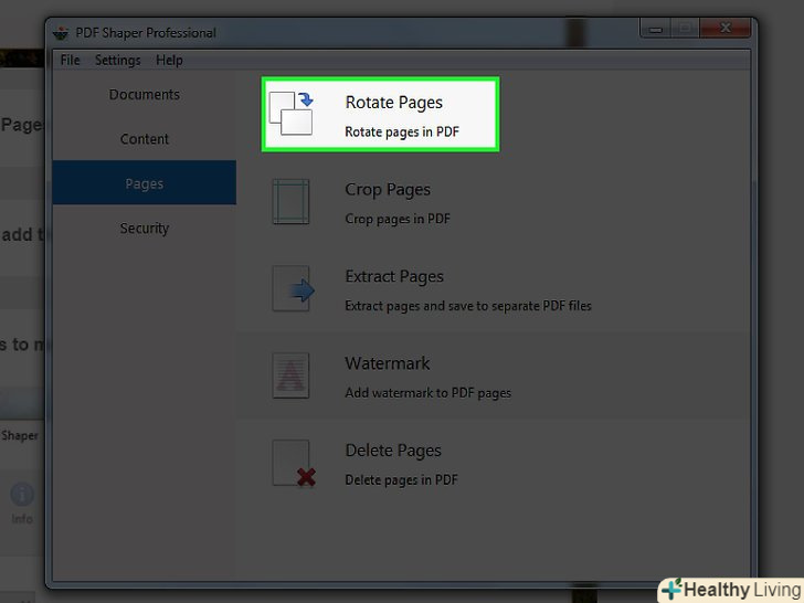 Відкрийте діалогове вікно "повернути". використовуйте один з наступних способів:- У меню» Інструменти "виберіть" Сторінки«, а потім натисніть»Повернути".