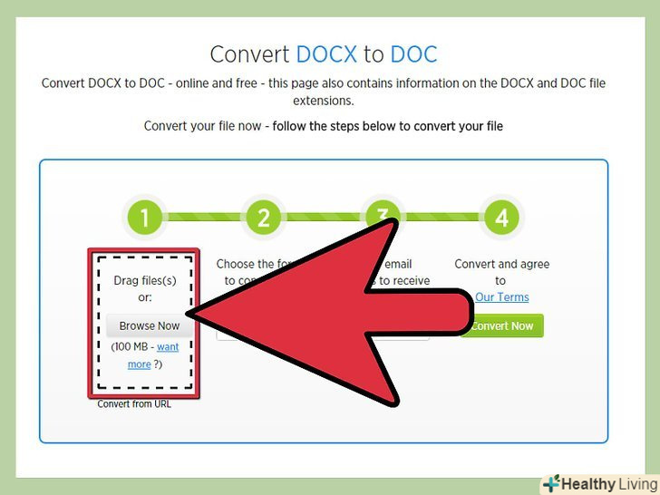 Завантажте файл DOCX, який ви хочете конвертувати.цей процес залежить від конвертера, але в більшості випадків знайдіть файл на вашому комп'ютері і перетягніть його у вікно конвертера (в браузері).