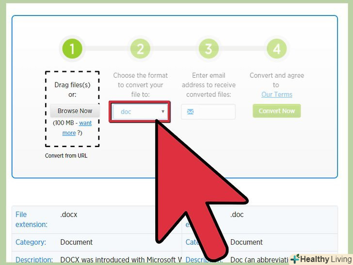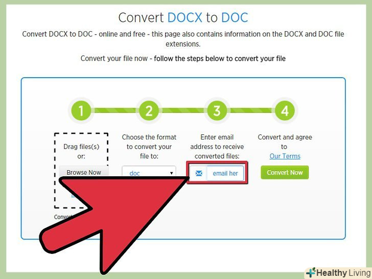 Знайдіть онлайн-конвертер.якщо ви не хочете нічого встановлювати або використовувати термінал, скористайтеся онлайн-конвертером. Примітка: не варто цього робити, якщо документ містить конфіденційну інформацію, так як ви будете завантажувати файл на віддалений сервер. Популярними онлайн-конвертерами є:- Zamzar -zamzar.com/convert/docx-to-doc/