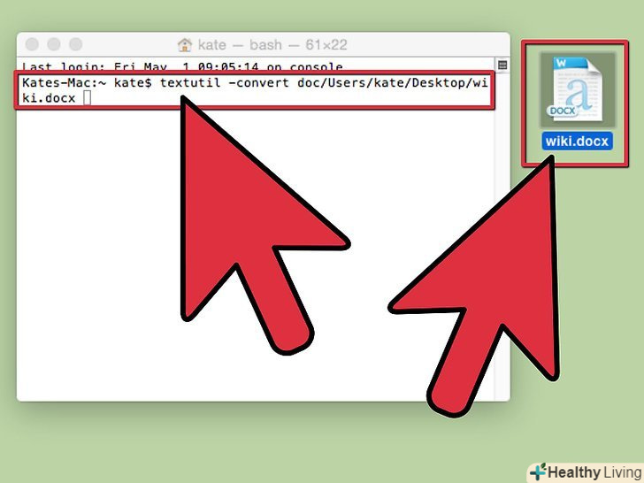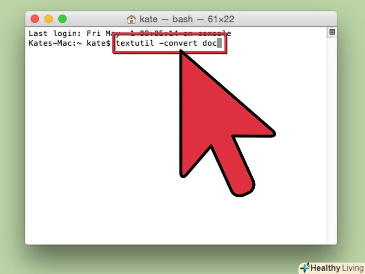 У терміналі введіть.textutil -convert doc. Поки не натискайте Enter.