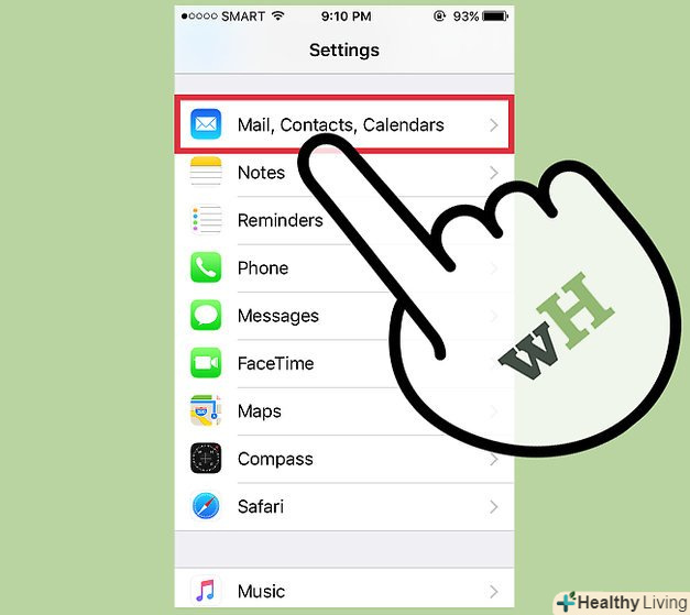 Виберіть " пошта, контакти, календарі».цим ви відкриєте налаштування для всіх підключених акаунтів електронної пошти.