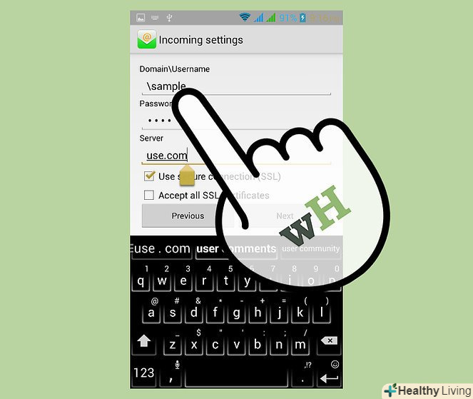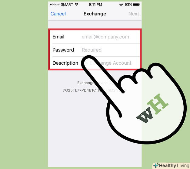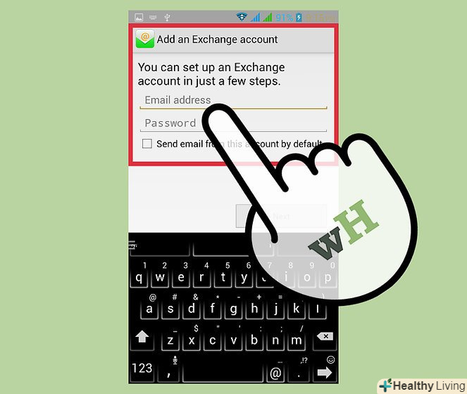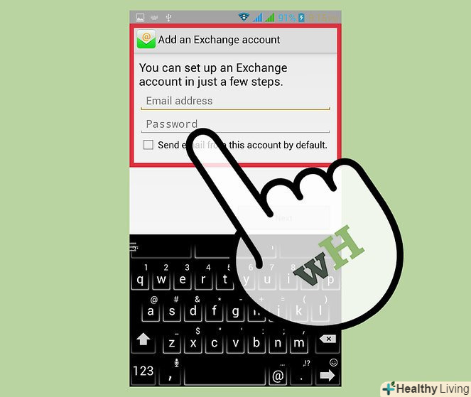 Введіть свою адресу електронної пошти та пароль.ваш пристрій спробує автоматично підключитися до облікового запису Exchange або Office 365.- Якщо ваш пристрій не може підключитися до вашої робочої пошти, тоді вам необхідно звернутися в IT-відділ і дізнатися, чи існують які-небудь спеціальні інструкції для підключення і чи можуть вони вам допомогти.