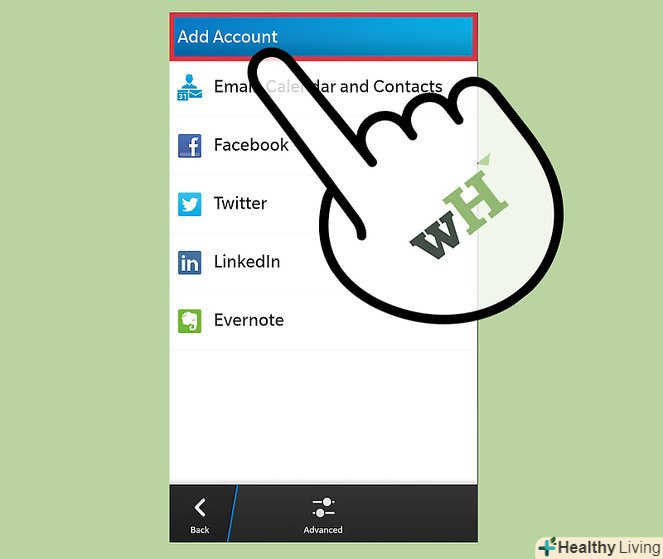 Натисніть на кнопку "Додати аккаунт".таким чином, ви зможете додати новий акаунт до свого телефону BlackBerry.